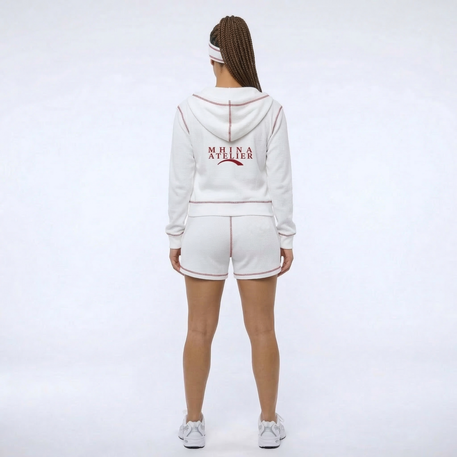 A clean and stylish white athleisure set featuring a comfortable hoodie and matching shorts. Designed with soft breathable fabric for everyday comfort, workouts, or casual outings.